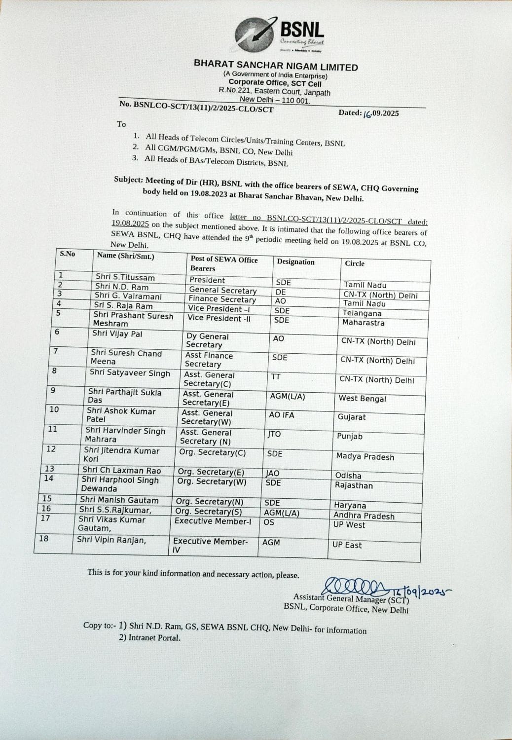 Today 01/09/2025, I along with AGS(C) & CS CNTx North Sh Satyaveer Singh, NAFS & CP CNTx North Sh Suresh Chand Meena, Sh Lokendra Ganolia Ex CHQ OB, Sh Ashok Kumar Meena VP CNTx North, Ms Pramila ACS CNTx North, Sh Pawan Kumar Kashyap OS CNTx North, Sh D N Sardar DS CNTx North, Sh Sambhu Ram ADS CNTx North, Sh Naveen Kumar Member SEWA met our affectionate 5th time Winner (Quintessential Win) for the post of General Secretary of our affable renowned Union NFTE BSNL, Veteran Senior Wise Leader, Prominent figure, Eminent personality Shri Chandeshwar Singh ji, and Wholeheartedly greeted him for re elected again